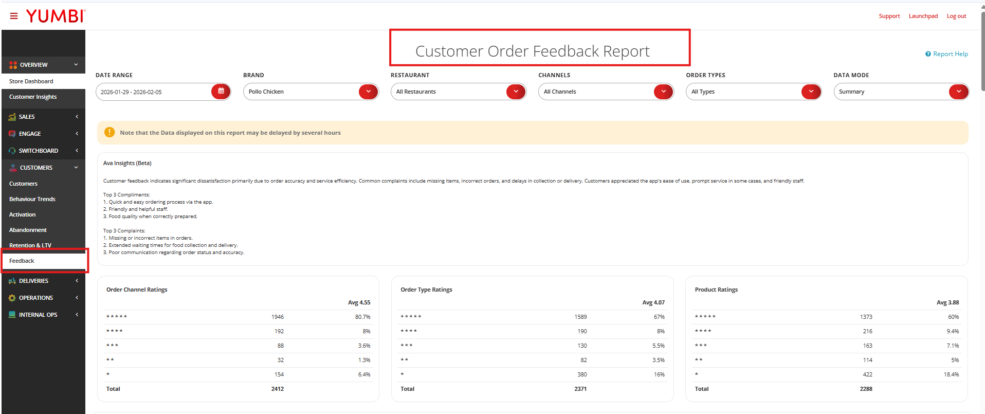 This report is available to Brand Executives, Restaurant Owners and Restaurant Managers that have access to YUMBI reports. You can find this report under the 'Customers' panel on the reports page by the name ‘Feedback’ or by following this link here.