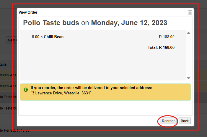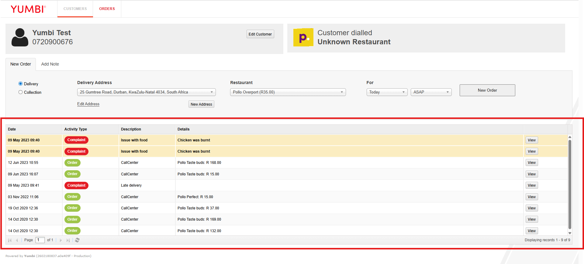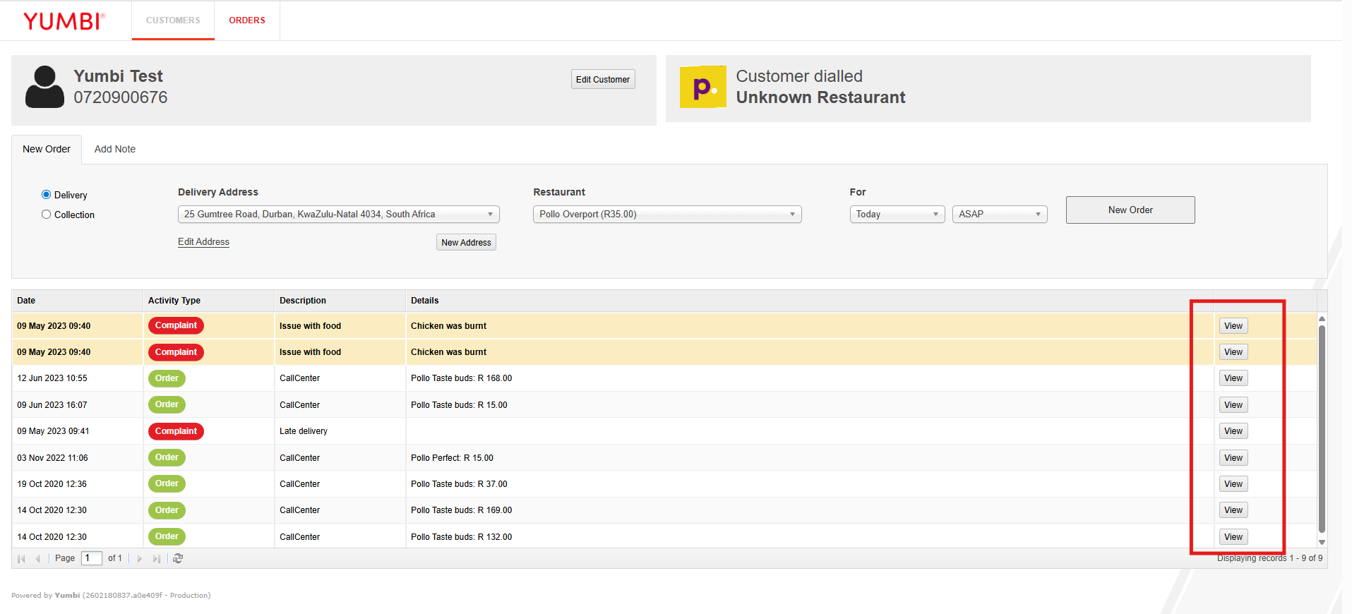 Should the customer be an existing customer, their previous orders will be populated below their information, and should they wish repeat an order they have placed before, the agent can “view“ the order and select “reorder”.