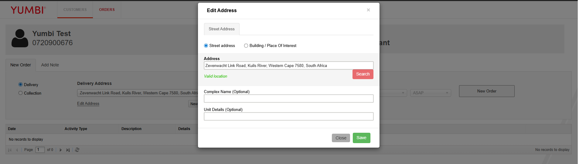Once the address has been saved, the system will look for the nearby stores that are currently open, allowing the agent to choose the closest store to the customers address.